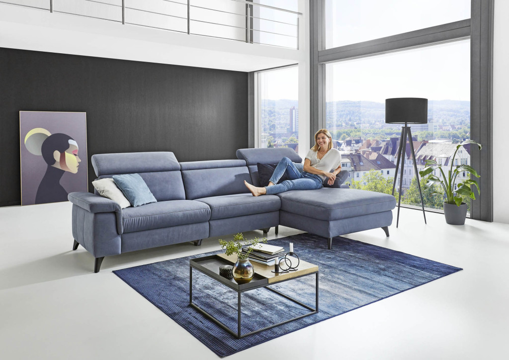 4101_VZS.M - Recamiere links freistehend, Vorziehsitz motorisch inklusive, Kopfteilverstellung inklusive, inklusive klappbare Armlehne, BHT ca. 209/81/98 cm