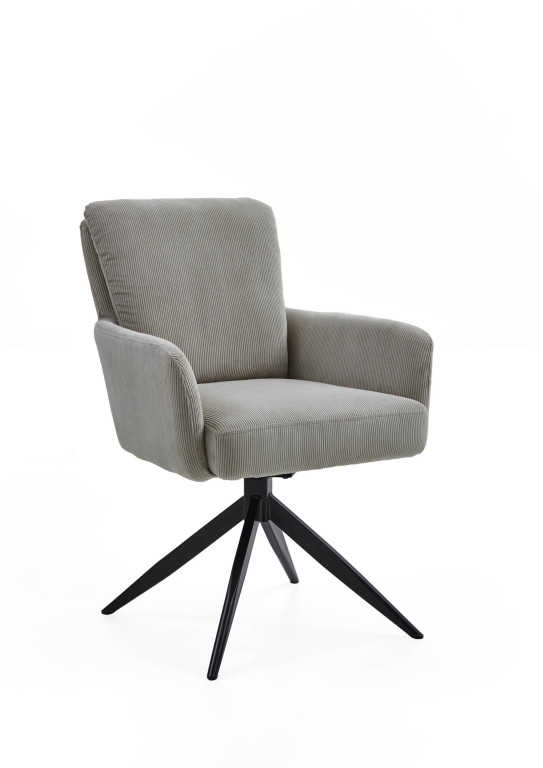 Stoff Cord, 100% Polyester, Farbe Norway sand, mit Kissendoppel Mikro-Taschenfederkern im Sitz, Stativ-Gestell Eisen schwarz, 180° drehbar mit Rückholfunktion, Sitzbreite 42 cm, Sitztiefe 45 cm, Sitzhöhe 49 cm, BHT ca. 60/90/68 cm