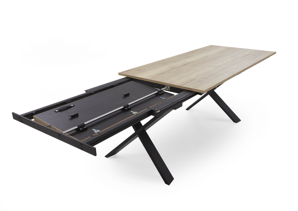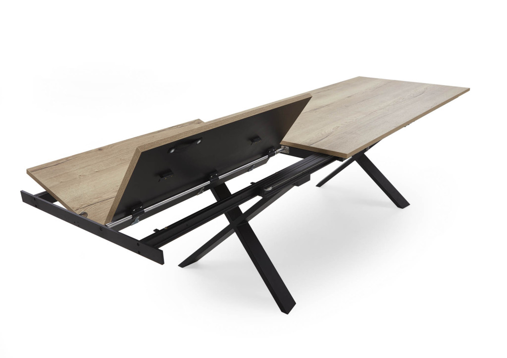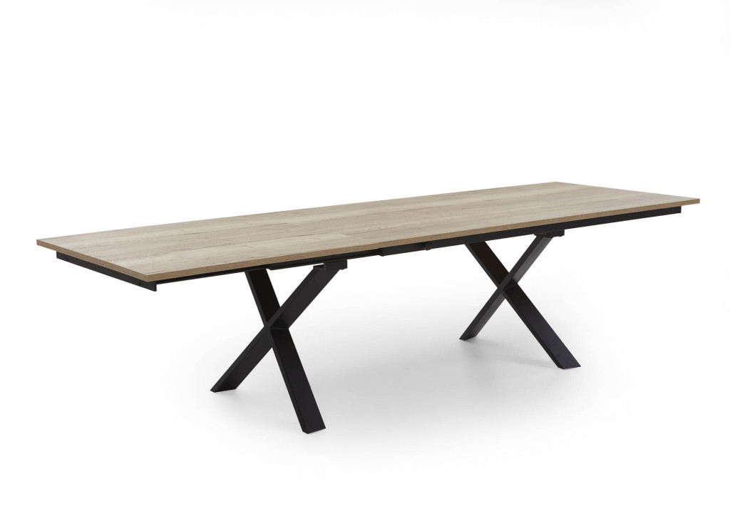 Platte Dekor Halifax, Farbe natur, X-Gestell Metall schwarz, Synchro-Schiebeplatte, Falteinlage 100 cm, LB ca. 200(300)/100 cm