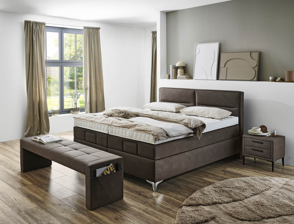 Gestalten Sie Ihr Boxspringbett ganz individuell. Wählen Sie aus verschiedenen Kopfteilen, Stoffen, Farben und Füßen und passen Sie den Liegekomfort mit Matratzen, Härtegraden und Toppern genau an Ihre Bedürfnisse an – auf Wunsch sogar für jede Bettseite unterschiedlich. So entsteht ein Boxspringbett, das Design, Komfort und Persönlichkeit perfekt vereint.