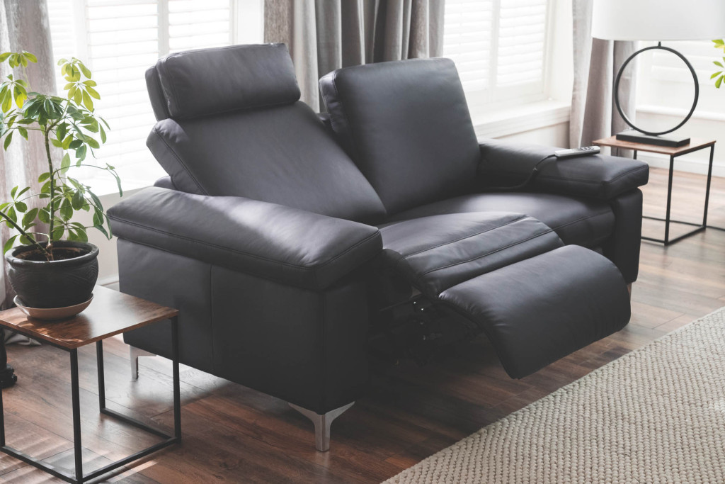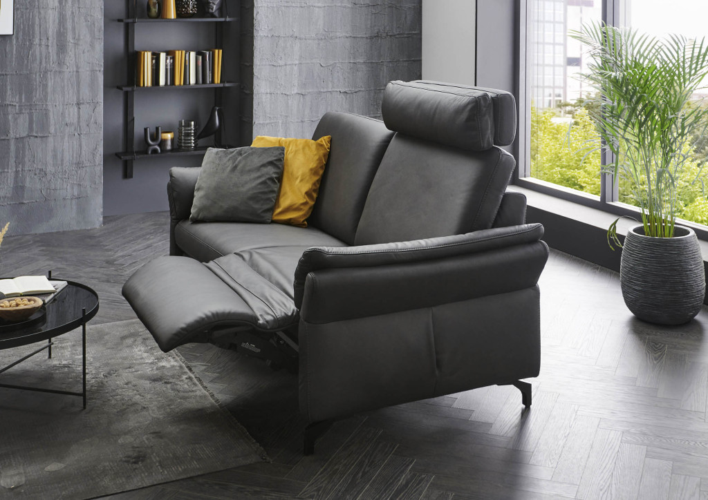 Leder anthrazit, ohne Kontrastnaht, Federkern, Rücken echt, ARMTEIL 1, Metalleckfuß schwarz matt, Sitzhöhe 46 cm, Sitztiefe 55 cm, bestehend aus:
