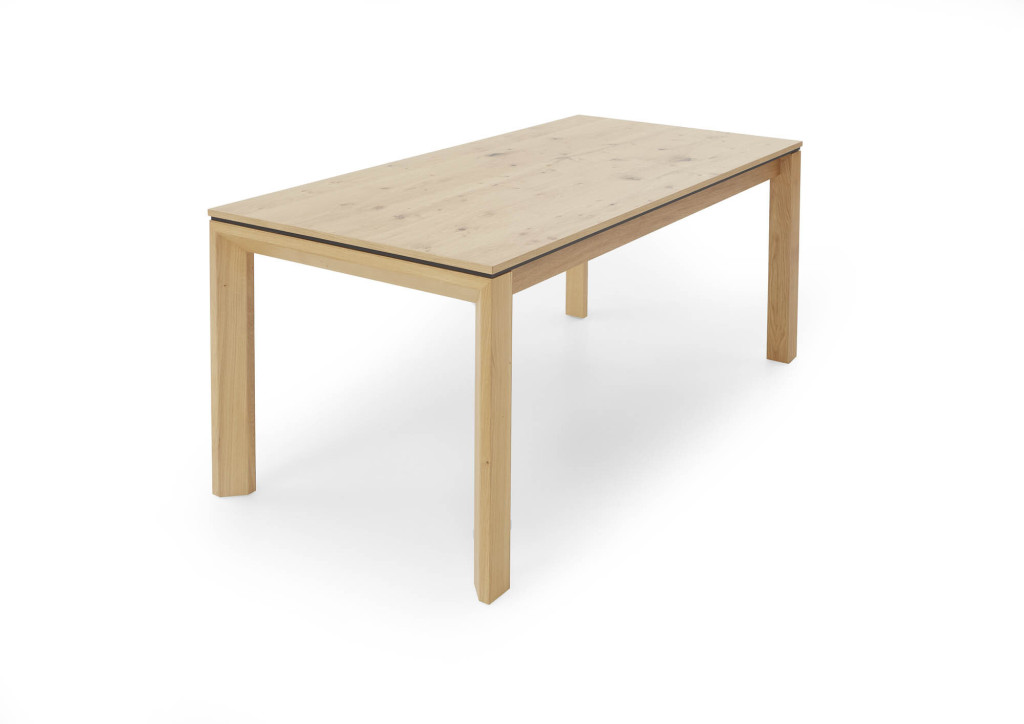 Charakter-Eiche furniert mit Hydro-UV Hartwachs Öl finish, mit Akzentfuge schwarz, mit Gestellauszug, mit Falteinlage 100 cm, LBH ca. 180(280)/90/76 cm
