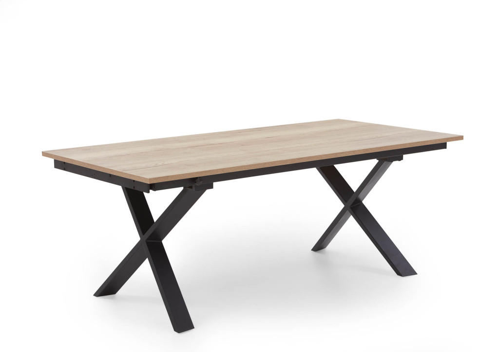 Platte Dekor Halifax, Farbe natur, X-Gestell Metall schwarz, Synchro-Schiebeplatte, Falteinlage 100 cm, LB ca. 200(300)/100 cm